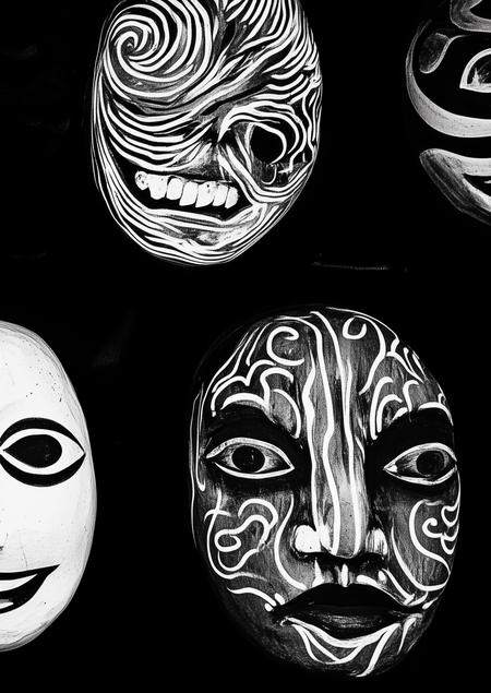 (10) https://s.mj.run/rW0U_6f9Pdk https://s.mj.run/kwvcKnabiMo studio portrait, black and white t-shirts with ornament on a strange type model who stand on black background with light, photographed by masahisa fukase --ar 3:2 --stylize 0 --v 6.1