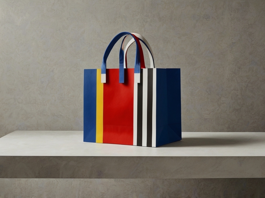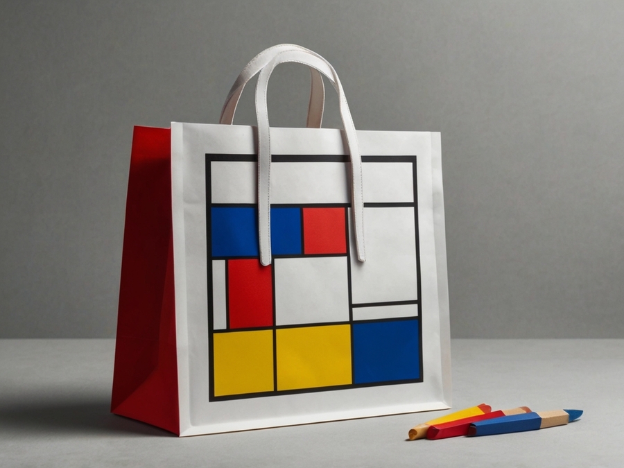 «Design a paper bag in the style of the De Stijl art movement, inspired by Theo van Doesburg’s works. Incorporate geometric shapes such as rectangles and lines with a focus on symmetry and balance. The primary color palette should feature red, blue, yellow, black, and white. Include the brand name 'Geometrix' on one side of the bag, using a clean, sans-serif font that integrates seamlessly with the design. Ensure the bag reflects the modern, avant-garde aesthetic and simplicity characteristic of De Stijl. Add neat lines and sharp edges to emphasize the structure and artistic nature of the composition.»