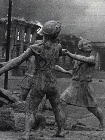 Художник накладывает новый смысл, который связан с событиями в Волгограде в 2013 году. Реконструируя события 1942 года, и транслируя их в новом пространственном измерении, художник поднимает тему опасности и спасения в современном мире.