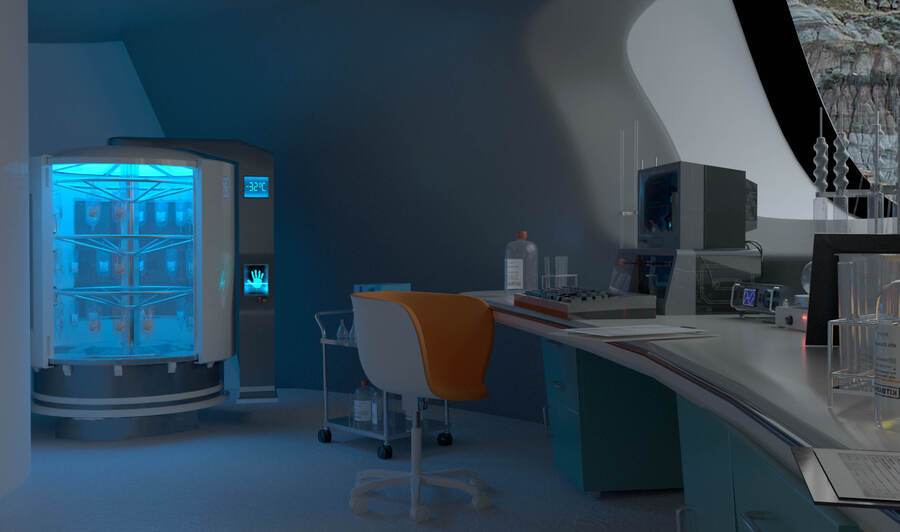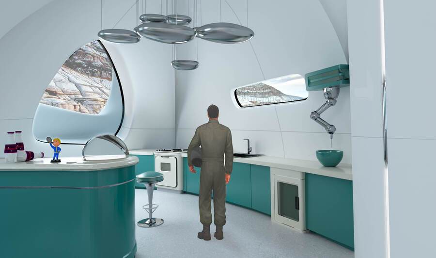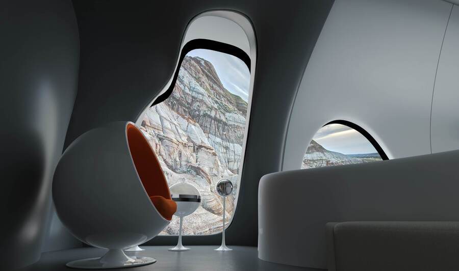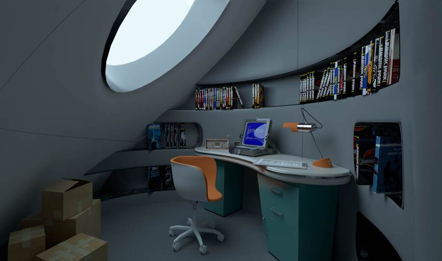 Точкой опоры послужил вступительный проект, хотя многое изменилось. Технологичное будущее, сочетание ретро-футуризма и природных форм как основа концепции «Chrono.home»