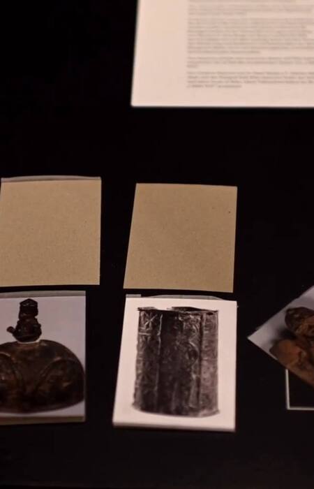 Рядом с объектами появляется развернутый этикетаж, объясняющий историю предмета, его происхождение, предназначение и обстоятельства появления в коллекции немецкого музея.