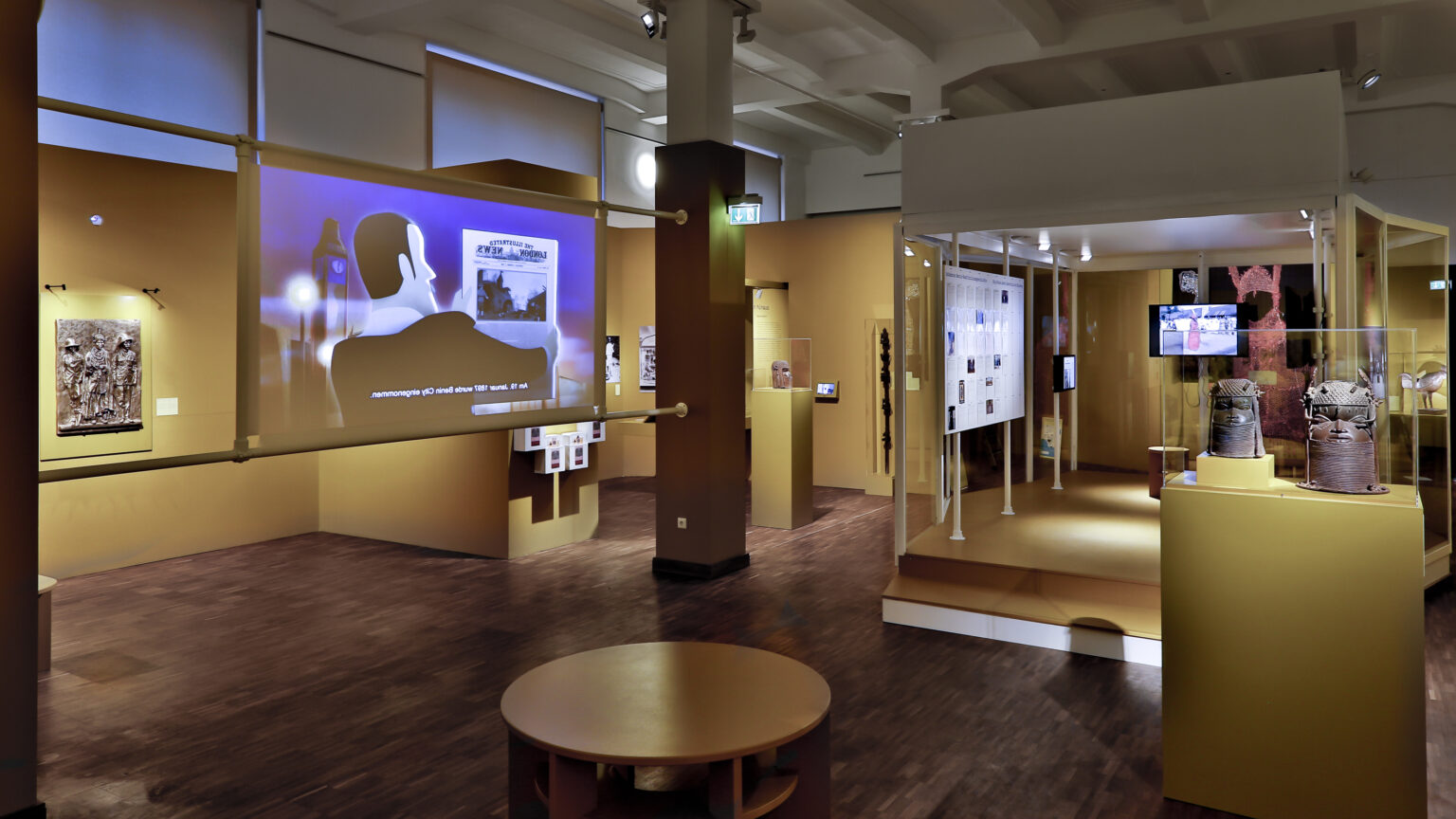 Медиа-инсталляция об истории Бенина, экспозиция бенинских бронз в Форуме Гумбольдта, этнологический музей Берлина, Германия, 2024 г.