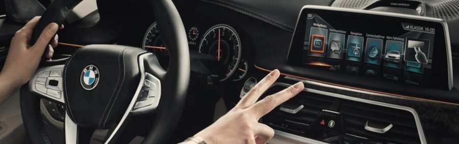 Инженеры BMW внедрили жестовое управление медиа системой i-Drive в модель 7series в 2015 году, совместив таким образом технологию сенсорного экрана с распознанием жестов. Используется логический перенос жестов (вращение пальцев увеличивает или уменьшает громкость радио, как если бы человек физически вращал элемент управления, а пролистывание двум пальцами меняет раздел меню) Однако, при всех нововведениях традиционные, физические элементы управления климат контролем и радио остаются на привычном для пассажиров месте.