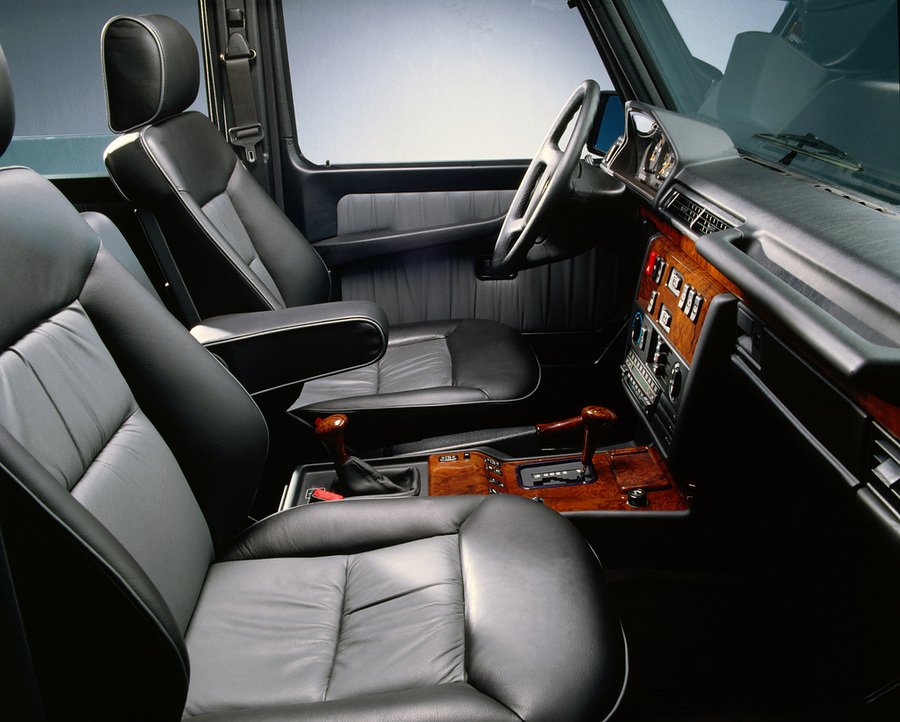 Интерьер становится более лаконичным в сравнении с первым поколением модели G-Class. Количество физических кнопок визуально сокращается, они объединяются в ряды для минималистичного визуального впечатления. От предыдущих поколений сохраняются только кнопки блокировки дифференциало и вручка для пассажира, являющиеся знаковыми особенностями модели. Однако, кнопки блокировки дифференциалов лишились характерного отклика, в связи с заменой пневматических блокировок на электронные.