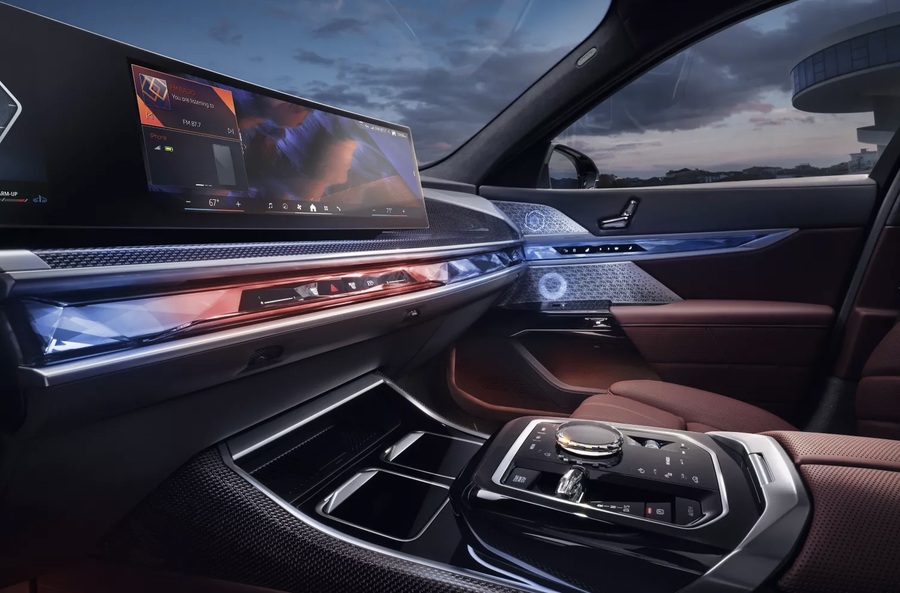 В Обновленнии BMW 7 series произошла смена парадигмы от привычной ориентированности на водителя в сторону торжественности. Фокус смещается с типичного для баварцев «Drive» на «Theater», эмоции не только для водителя, но и пассажиров. Седан получил самое большо количество экранов за всю историю бренда (12), включая экраны в месте дверных ручек, дверных карт, экраны, заменяющие физические кнопки, и самый главный 31 дюймовый экран для задних пассажиров