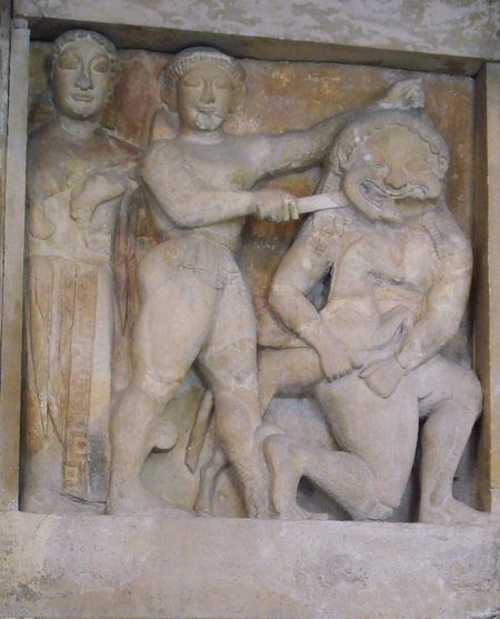 Метопы из храмов в Селинунте, ок VI в. до н. э.: 1. Персей, убивающий Медузу Горгону 2. Похищение Европы