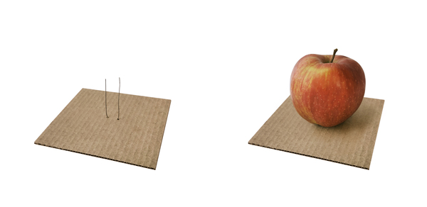 Шаг 2 Продень проволоку так, чтобы оба ее конца оказались наверху. Сверху надень на проволоку яблоко — так оно будет держаться на подставке.