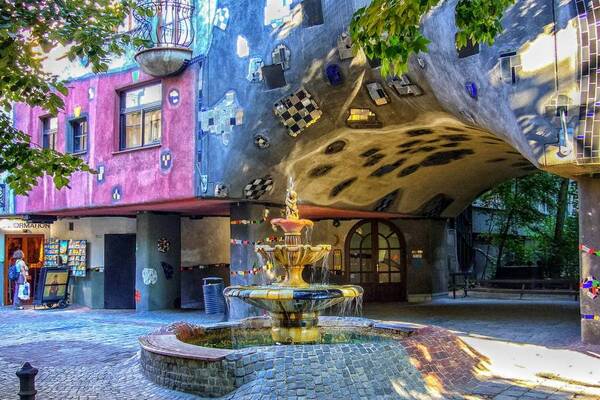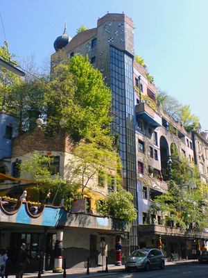 Удивительный дом в Вене назван по имени создавшего его архитектора —Хундертвассера. Это один из первых архитектурных проектов автора. В этом удивительном доме нет ни одного одинакового окна, а крыша усыпана землей, на которой посажены деревья и кустарники.