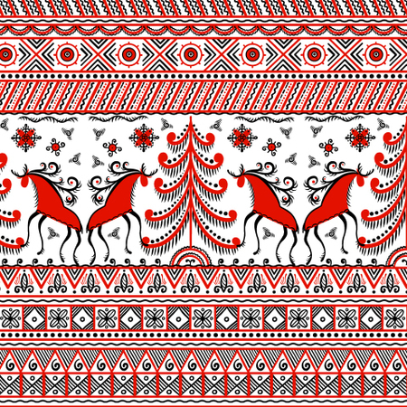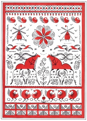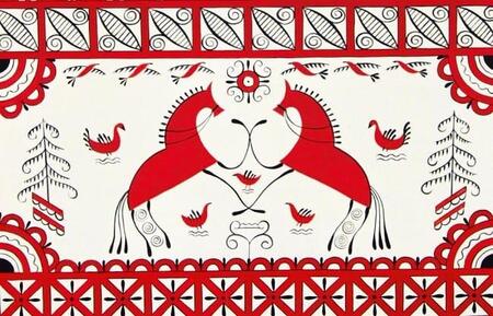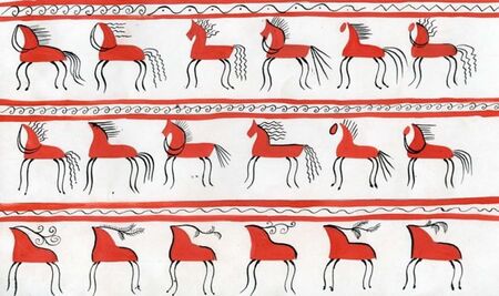 Главными персонажами мезенского декора стали лошади и олени. Они рисовались в двух традиционных цветах — красном и черном.