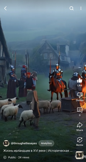 Использованный промпт: Как опытный создатель YouTube Shorts (или сценарист), твоя задача — написать короткий (или подробный) сценарий для видео про жизнь ирландцев в 16 веке, включая основные тезисы, визуальные идеи и примерный хронометраж.