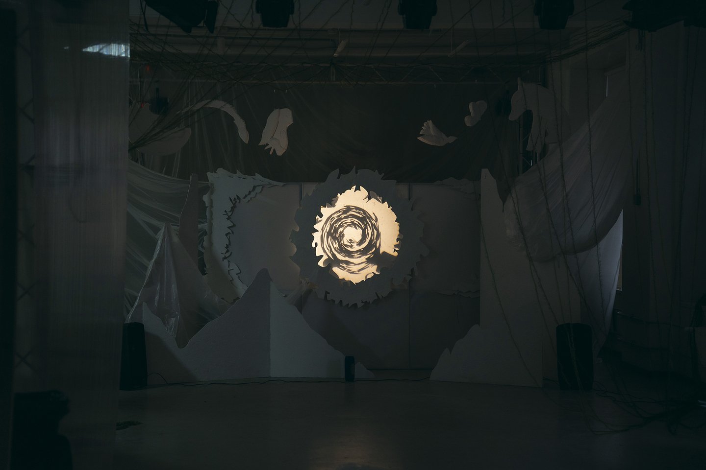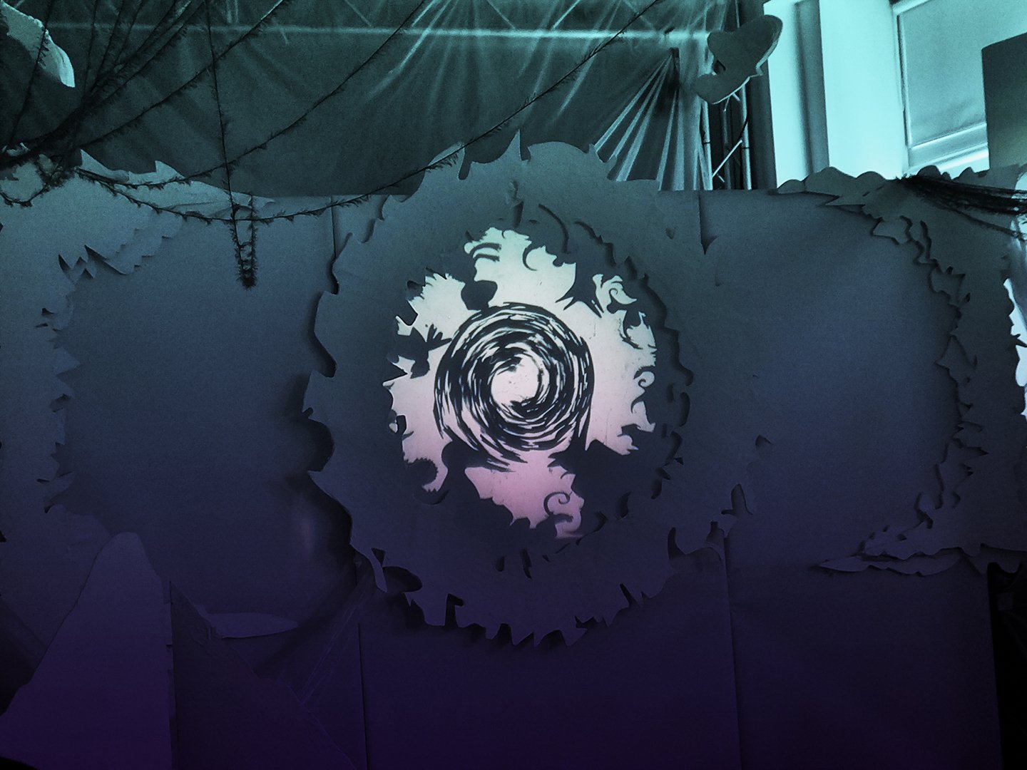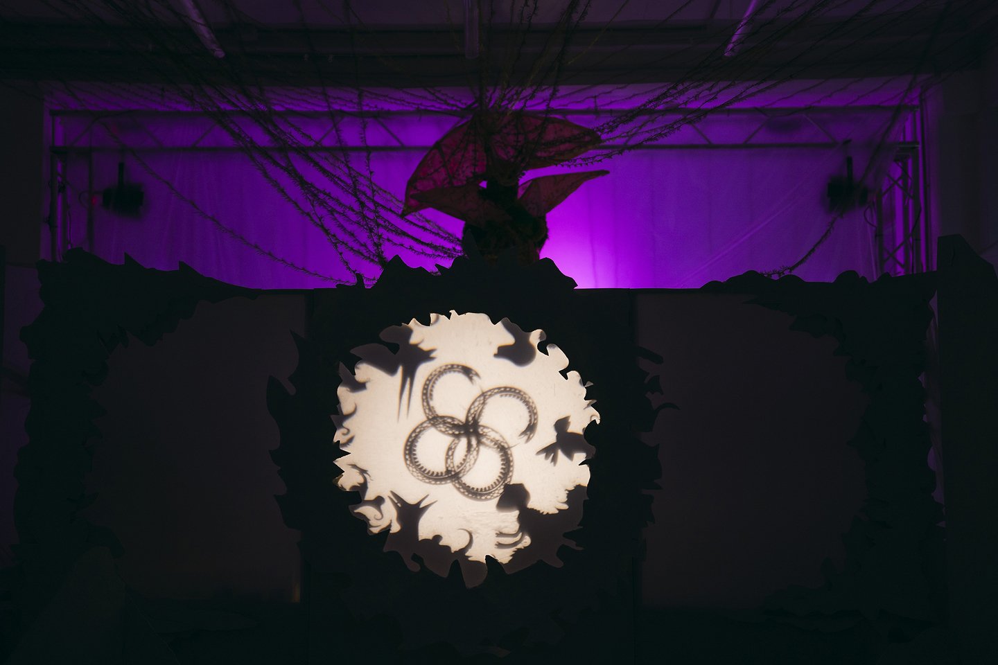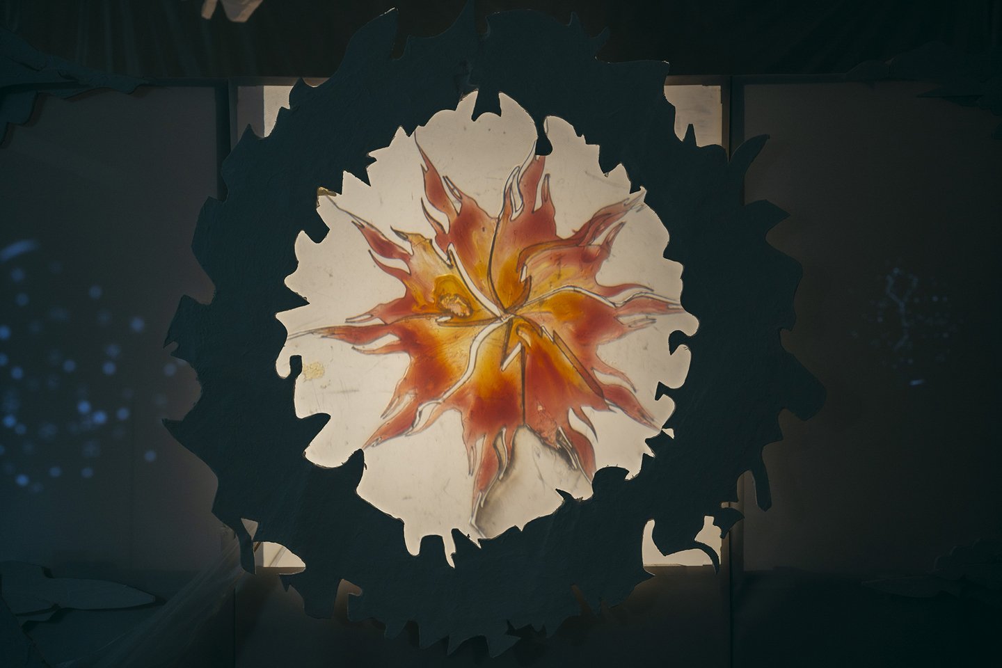 В теневом спектакле основным элементом внешних декораций является центральный экран. Он выступает в роли важного символа цикличности природы. Круг становится центром, вокруг которого разворачивается действие, позволяя зрителям сосредоточиться на взаимодействии персонажей и их взаимосвязях, тем самым формируя целостное восприятие истории.