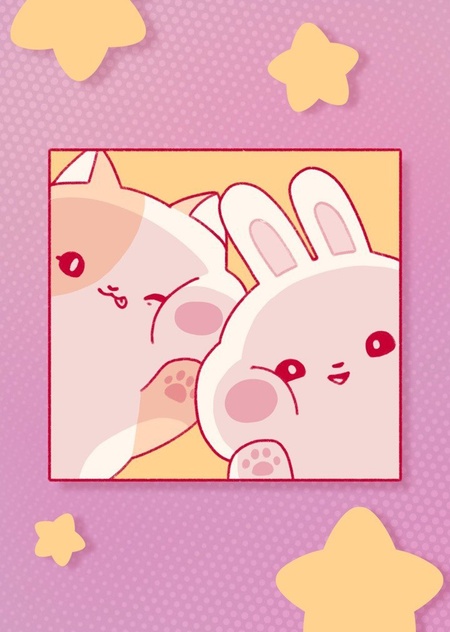 Забавные кролик и котёнок в кавайном клипе на трек японского продюсера Ёсино Ёсикава.
