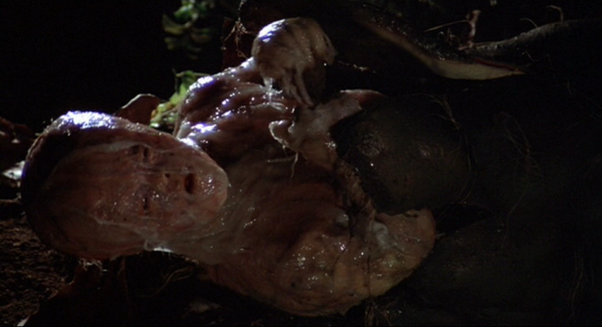 Чудовище поселяется внутри человека, используя его тело как инкубатор. Сам момент рождения монстра — когда существо прорывается из груди экипажного члена — стал одной из самых сильных метафор телесного ужаса. Это сцена потери контроля, где граница между человеком и паразитом стирается.