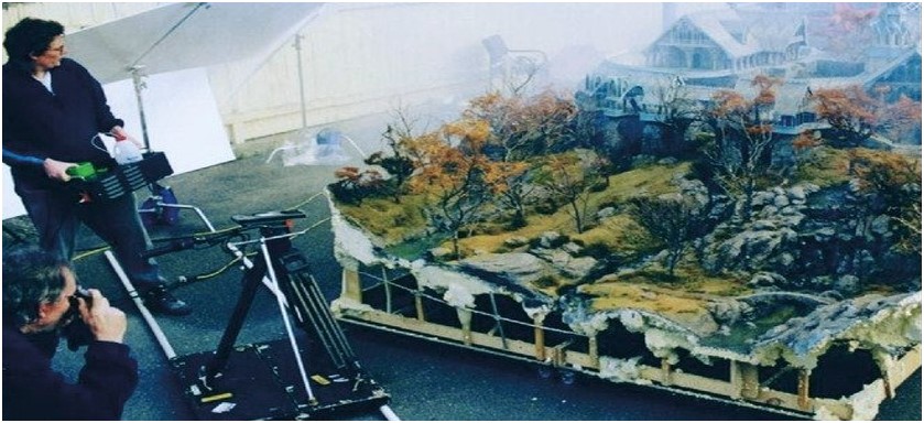 Данное исследование основано на анализе специальных и визуальных эффектов, использованных для создания локаций в трилогиях «Властелин колец» (2001-2003) и «Хоббит» (2012-2014), снятых режиссером Питером Джексоном. При создании «Властелина колец» в основном использовалась макетная киносъемка, подразумевающая создание уменьшенного макета зданий и местности, характерных для задуманной локации. Обычно такие объекты называются миниатюрами (от англ. miniatures), но в данном случае команда придумала термин «бигатура» (от англ. bigatures) из-за нехарактерно крупного размера декораций. Данный подход был обусловлен желанием отразить мельчайшие детали для большего реализма. CGI же применялся для генерации объектов, невозможных в реальности, например, чудовищ.