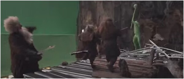Сцена сражения с королем гоблинов примечательна тем, что команда создала симуляцию, в которой с помощью очков виртуальной реальности режиссер мог отслеживать движения модели в динамике и которая работала на погружение в ситуацию. Традиционно цифровая модель создавалось на основе детализированного макета и анимировалась с помощью технологии захвата движения — motion capture.