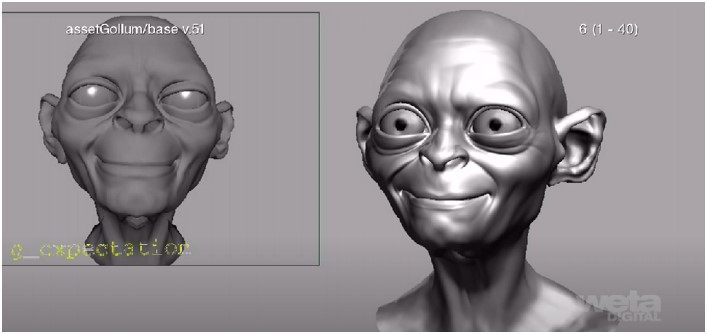 Главным достоянием трилогий «Властелин колец» и «Хоббит» стал Голлум. Процесс его создания проходил в несколько этапов. Сперва использовалась технология захвата движений, когда актер Энди Серкис в специальном костюме изображал в кадре движения персонажа. Полученные данные использовались для создания анимированной 3D модели, которая впоследствии заменяла актера в кадре. Эксклюзивная технология последовательного накладывания мускулатуры на скелетный каркас позволила воспроизвести мельчайшие изменения в подвижной мимике Голлума и даже сумела сымитировать эмоциональное состояние персонажа через взгляд. Кроме того, с помощью технологи Subsurface, за которую команда получила Оскар, впервые удалось воссоздать в текстуре модели эффект прозрачной кожи с пульсирующими под ней венами.