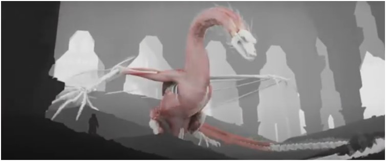 Чтобы придать большую реалистичность, художник по визуальным эффектам добавлял к локации двигающиеся элементы: воду (водопад, река), летящих птиц и идущих вдалеке путников.
