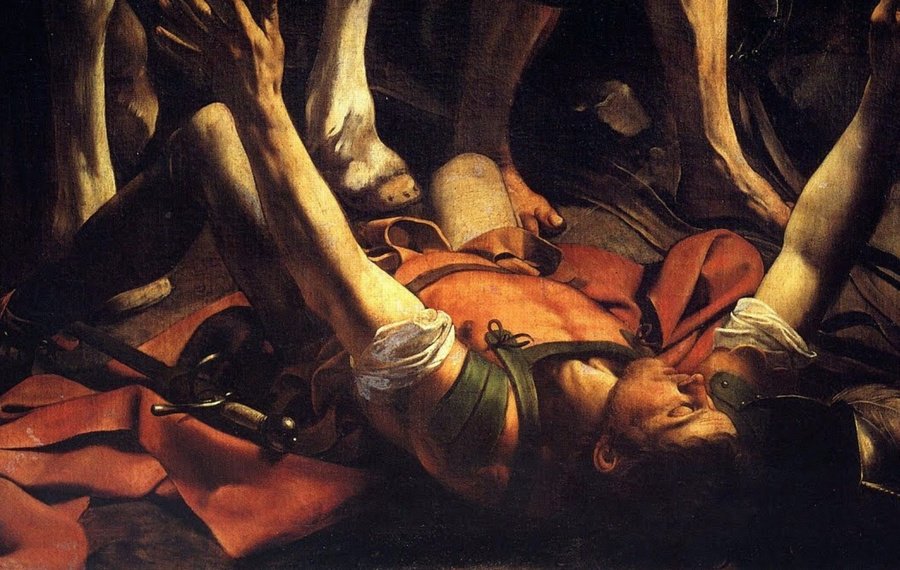 На примере одной из более поздних работ Караваджо можно заметить, как световые пятна разделяют тело героя на разные планы, становясь основой композиционного решения.