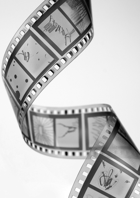 Диафильм был создан вручную: написанные композиции отсканированы и переведены в негатив, а распечатанные кадры отсняты на пленку и проявлены.