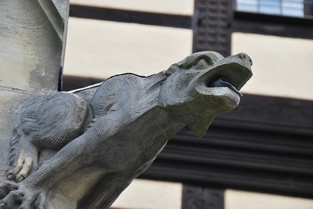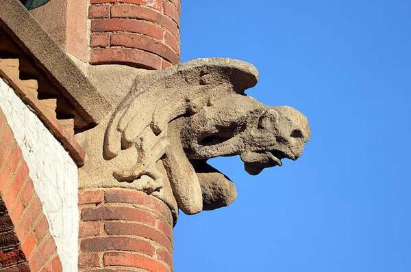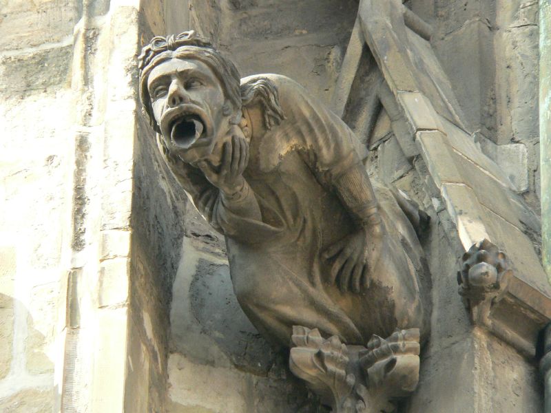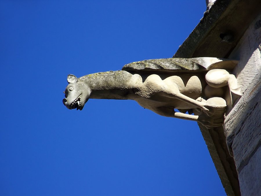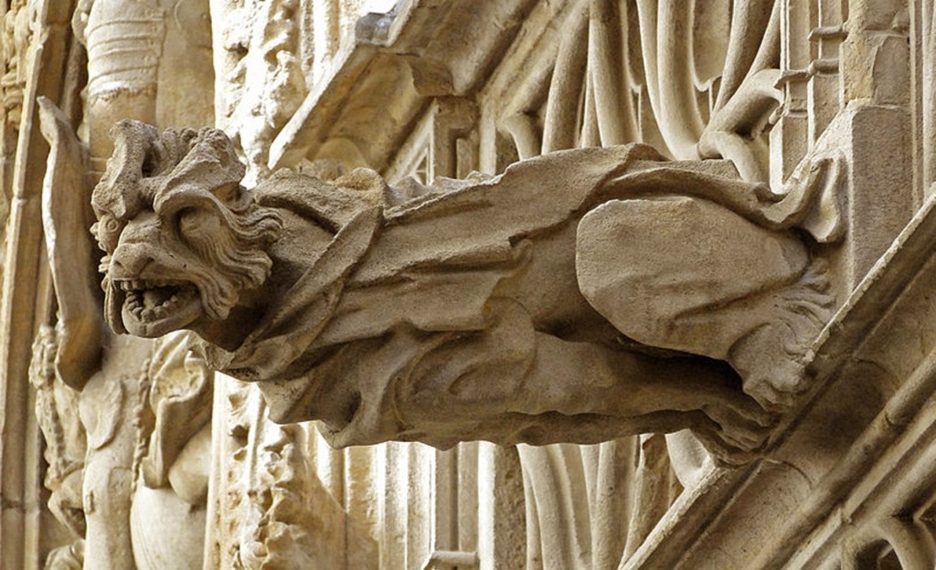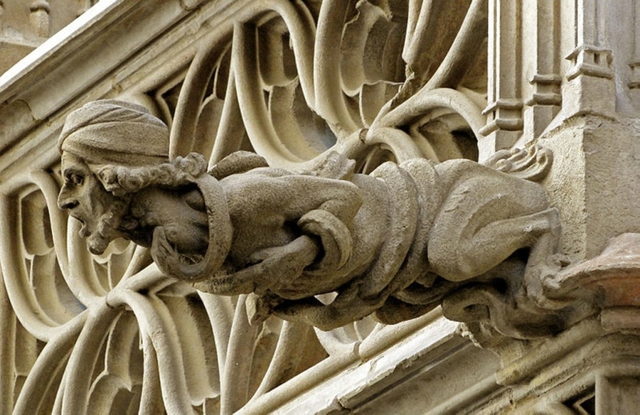 Сильно выступающие за пределы фасада и расположенные перпендикулярно стенам гаргульи словно указывают, что тёмным силам нужно держаться подальше от сакральных мест. Когда вода вытекает из их ртов, кажется, что это зло выливается за пределы святого храма.