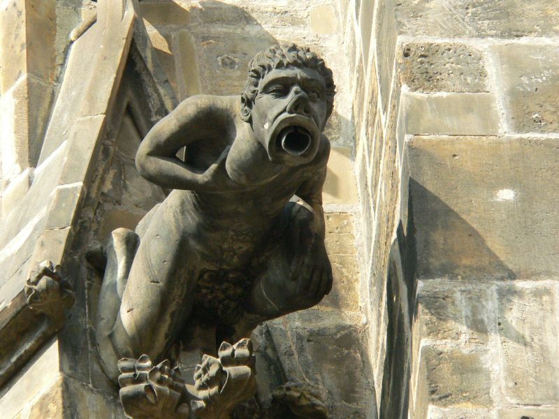 Одними из наиболее часто встречающихся являются гаргульи (горгульи или гаргуйльи) — вырезанные из твёрдого материала фигуры животного или человека, которые являются завершениями водосточных желобов. Техническое назначение гаргулий заключается в том, чтобы отводить воду от стен зданий, предотвращая эрозию (переувлажнение).