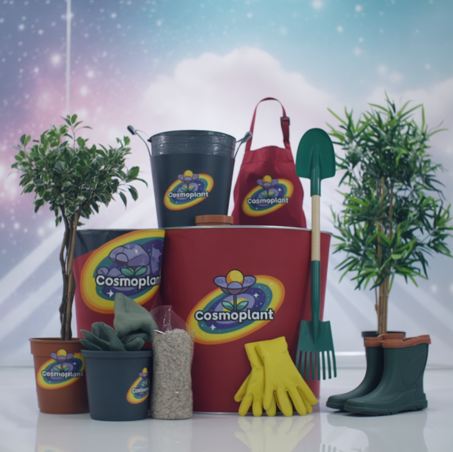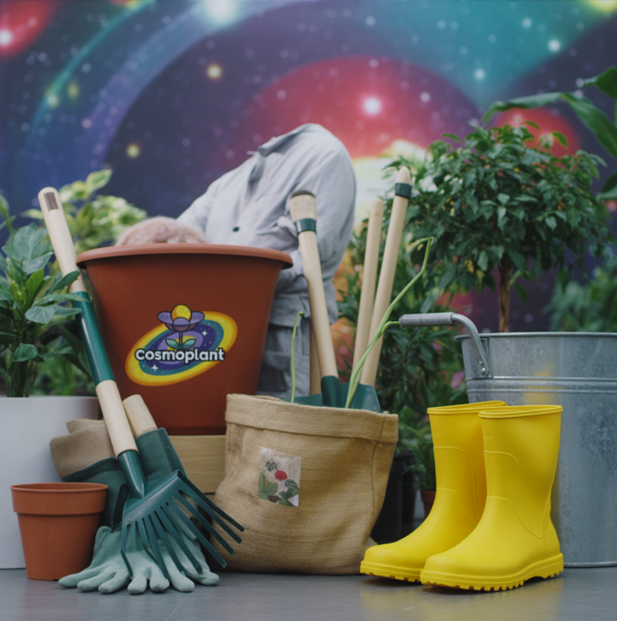 Promt: Create a corporate identity for a garden supplies and seeds store called «CosmoPlant». нейросеть: ideogram.ai