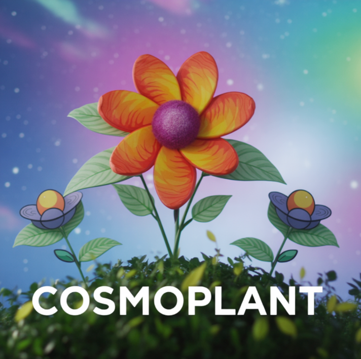Promt: Create a corporate logo for the CosmoPlant garden supplies, seeds and fertilizers store. The logo must contain the name of the store, the universe and the flower. Нейросеть: ideogram.ai