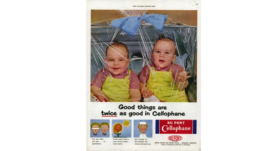 The best things in life come in Cellophane — лозунг использовался компанией DuPont в 1930–1960-е годы и стал одним из самых известных рекламных слоганов индустриальной эпохи