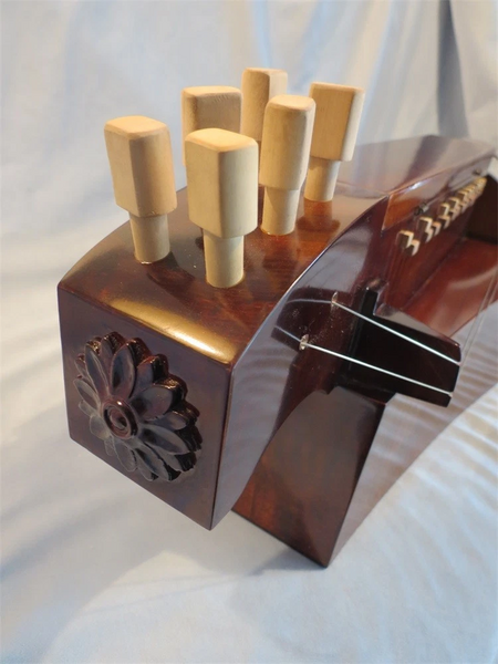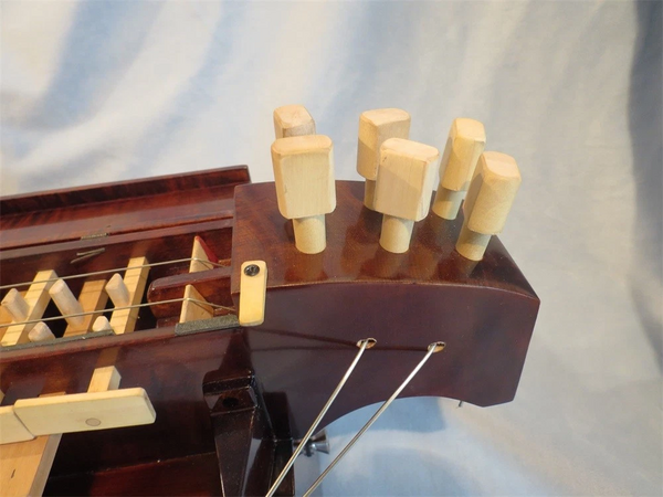 С противоположной от колеса боковой стороны находится головка колёсной лиры с колышками, используемыми для настройки звучания лиры.