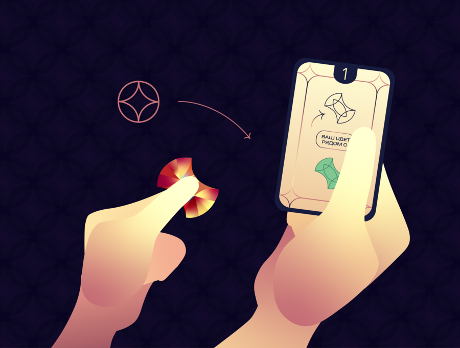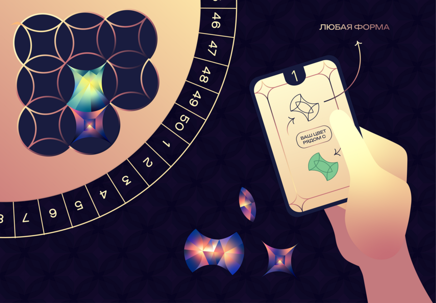 Вы дополняете узор калейдоскопа, ставя на поле кристаллы одного цвета, но 4 разных форм.