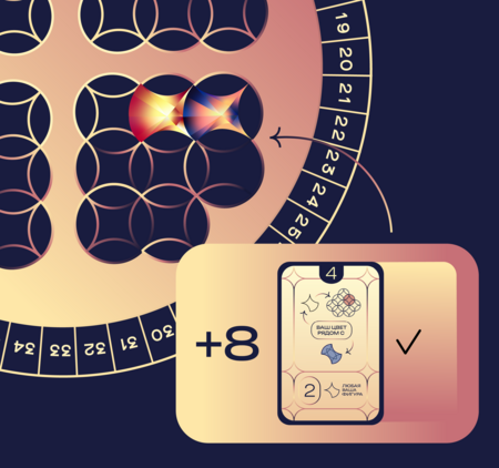 На круглом поле вы ставите тайлы, разыгрываете карты и набираете победные очки. Победитель — тот, кто набрал больше всего очков к концу узора.