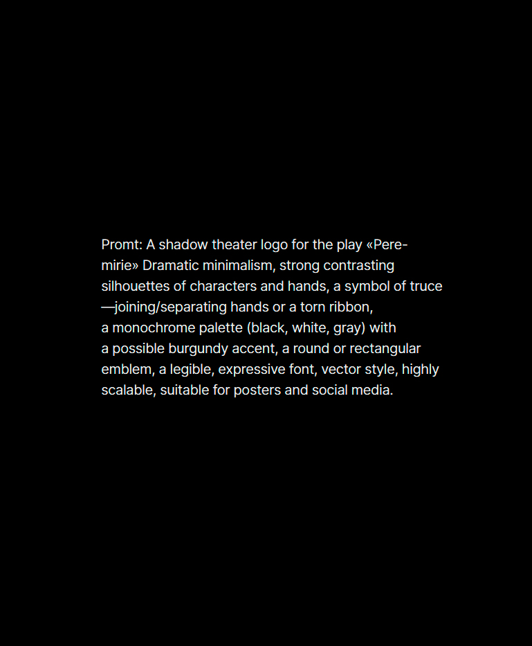 Теневой спектакль «Пере-мирие», основанный на пьесе Эгвины Фет, представляет собой сюрреалистичное художественное решение, где магия света и тени становится основным выразительным средством. В этом спектакле зрители погружаются в мир, где реальность и фантазия переплетаются, создавая уникальную атмосферу, полную метафор и символов.