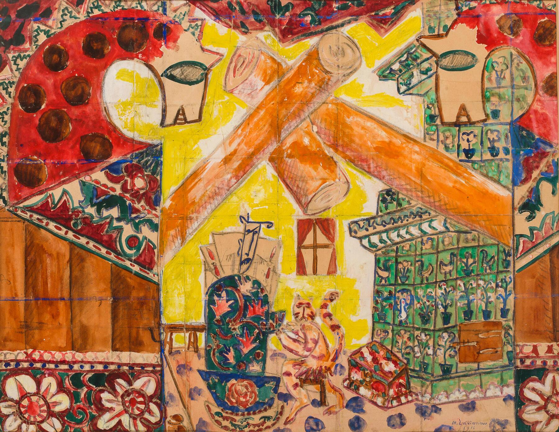 Эскиз декорации «Русские сказки», постановка «Кикимора» (1915, Михаил Ларионов)