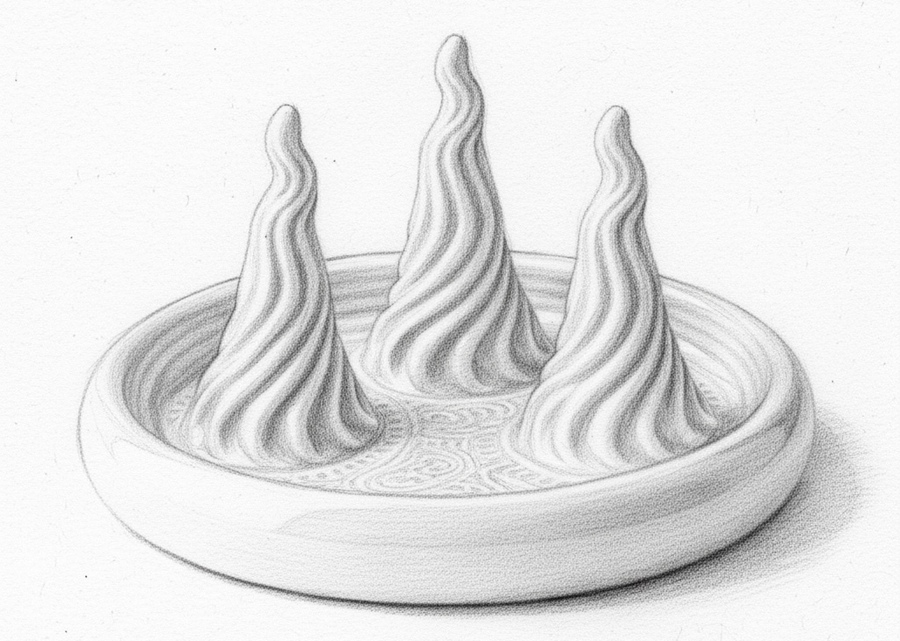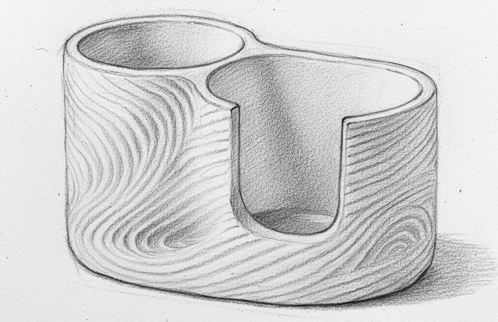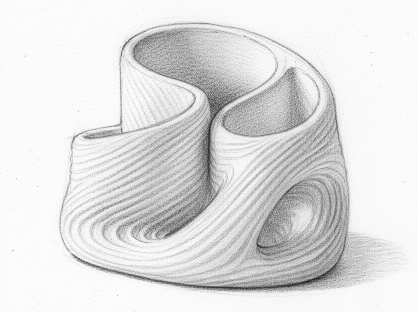 В основе концепции — плавное движение формы, вдохновлённое природными потоками: песок, вода, ветер, следы времени. Каждое изделие выглядит как застывшее движение — мягкое, текучее, тактильное.