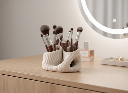 2. Общая характеристика изделия - Тип изделия: настольный органайзер - Форма: органическая, скульптурная, с волнообразной геометрией - Конструкция: монолитная, без сборных элементов - Количество отделений: 3 (асимметричные) - Способ производства: аддитивное производство (3D-печать)
