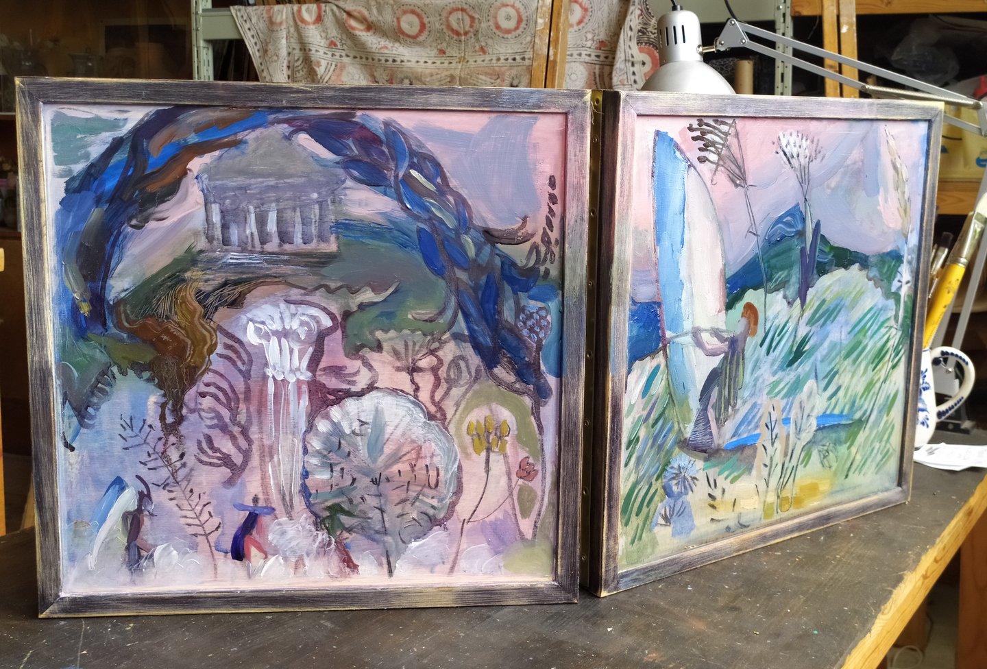 Размер в раскрытом виде 43×85 см Холст, масло, дерево, оргалит