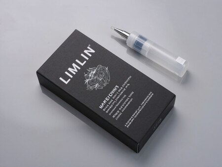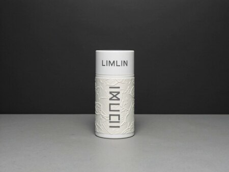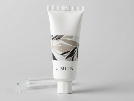Generate a hyper-realistic product image of a specialized hot glue product designed for textile embellishment, branded as «LIMLIN». The product packaging/container should clearly display the LIMLIN brand identity and reflect its unique approach to textured art on fabric.