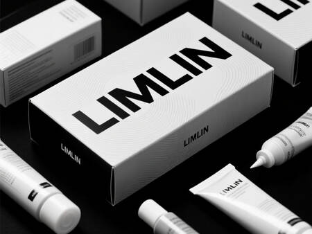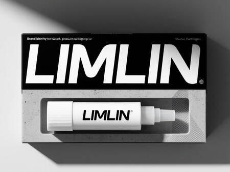 Generate product packaging designs (boxes and/or bags) for the specialized hot glue product by «LIMLIN». The packaging must prominently feature the LIMLIN brand identity and reflect the tactile and artistic nature of the product, strictly adhering to a black and white (monochromatic) color palette with shades of gray. The design should be suitable for housing a glue stick, tube, or cartridge.