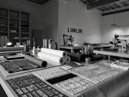 Generate a logo for the brand «LIMLIN». LIMLIN is a workshop that applies unique textures made from hot glue onto textiles and creates its own original fabric canvases. Brands and individuals seeking to enhance their existing garments can collaborate with LIMLIN. black and white colours
