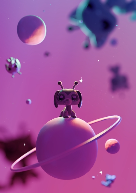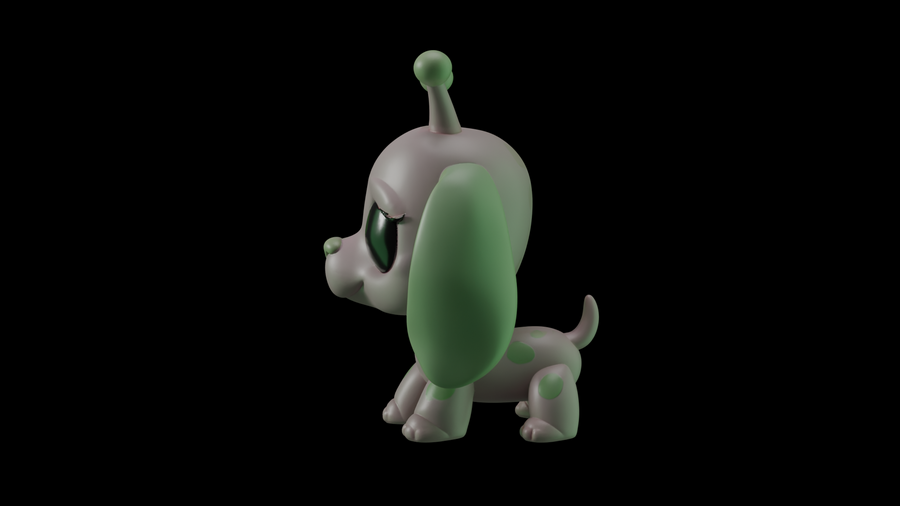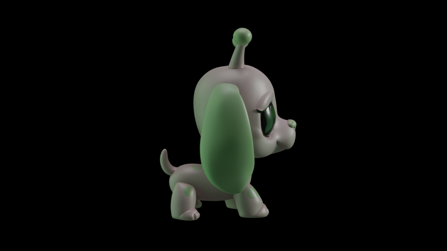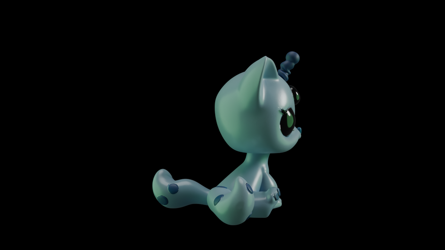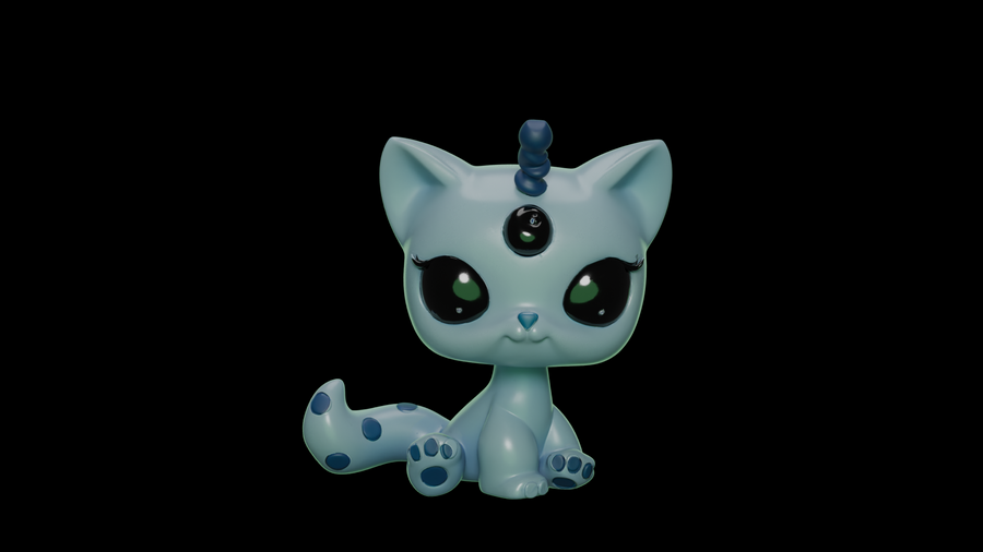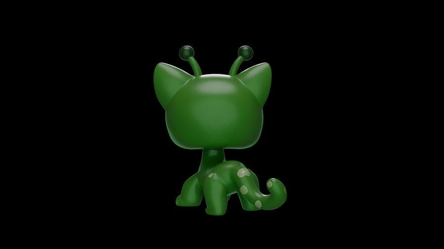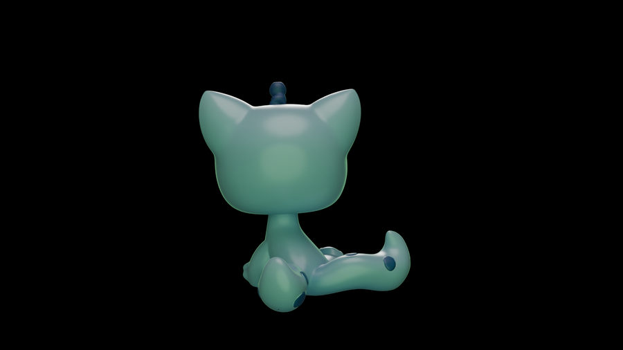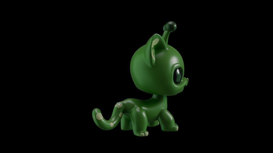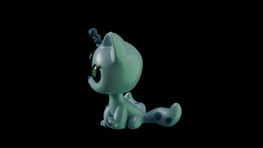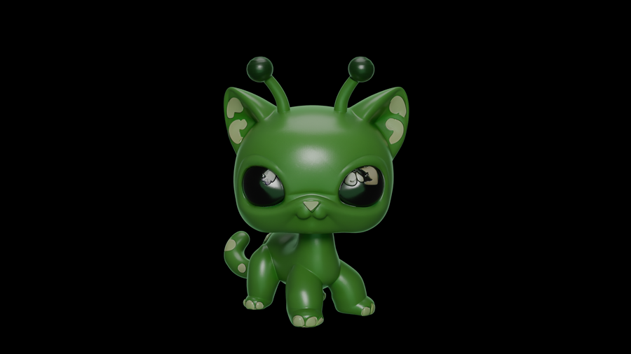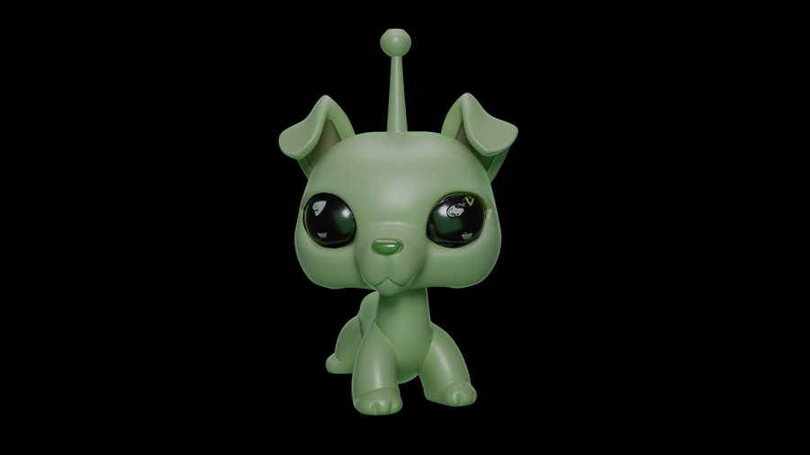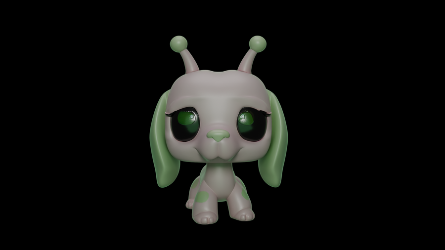 Первым делом были разработаны эскизы с помощью Nano Banana. Нейросети были даны референсы игрушек LPS и промпты сделать им другой окрас, добавить антенны пришельцев и другие желаемые элементы, чтобы в результате получились котята и щенята-пришельцы. Следующим этапом в той же нейросети были сделаны варианты эскизов, на которых модель изображена в других ракурсах — справа, слева и сзади.