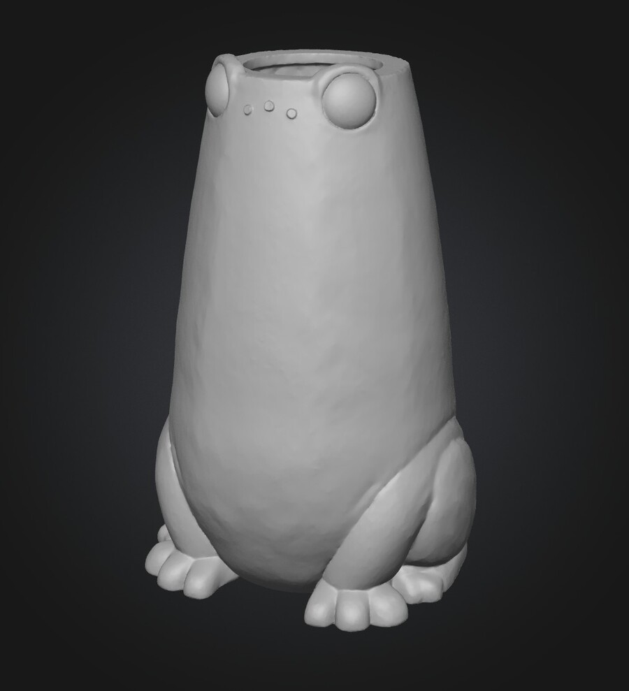 В рамках проекта лягушка лишается повествовательных, эмоциональных и декоративных характеристик. Отсутствует апелляция к персонажу, символике или нарративу. Вместо этого используется редуцированная морфология: обобщённые объёмы, симметрия, вертикальная ориентация формы, устойчивое основание. Образ лягушки функционирует как формальная матрица, позволяющая выстраивать вариации объекта без утраты узнаваемости и без выхода за пределы единой стилистической системы.