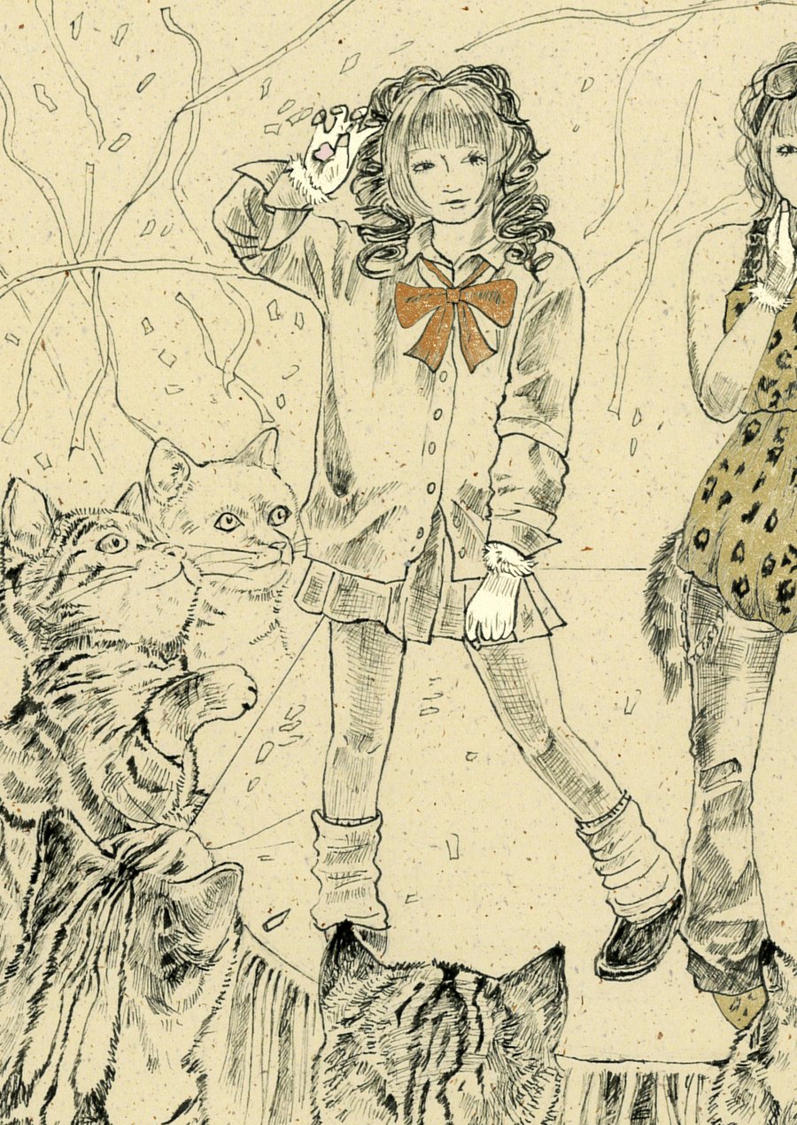 Название проекта иллюстрации «Мацурики» содержит отсылку на японские праздники — «мацури». Раньше термином мацури обозначали ритуалы в японской религии — синто, но со временем они превратились в сезонные торжества, парады и веселые карнавалы. Всех их объединяет гармоничное отношение с природой, любовь к животным, детям и веселью. Для материала была выбрана тонированная японская бумага, графика лайнерами и цифровая тонировка цветом.