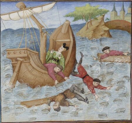 Крушение арабского корабля. Средневековая миниатюра XIII в.