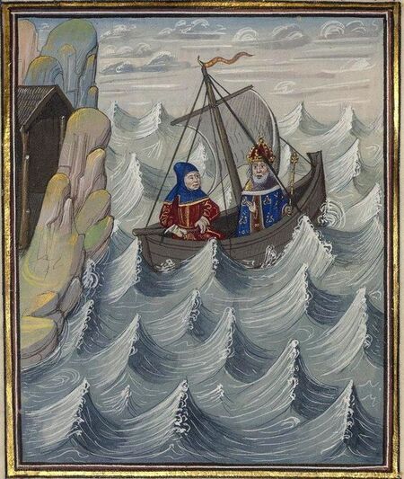 Миниатюра с изображением Филиппа Огюста, обслуживающего флот. Отрывок из Хроник Франции или Сен-Дени. 1332–1350 гг.