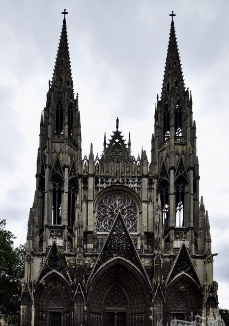 1- Витраж в часовне Сен-Шапель. Поздняя готика. 2- Руанский готический собор