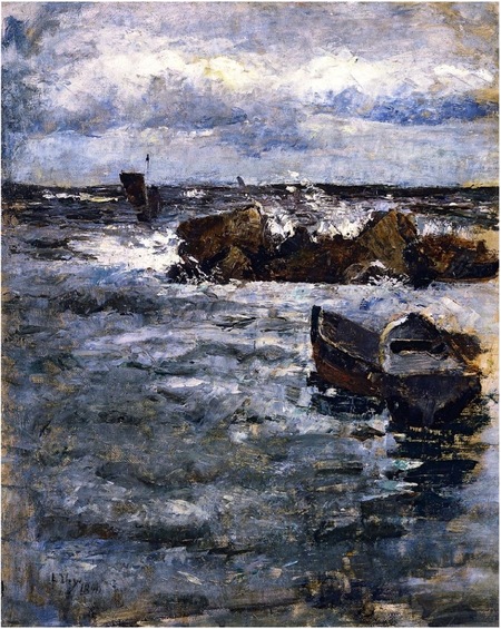 1- Эмиль Нольде. Лодка в море. 1921. 2- Лессер Ури. Скалы на Капри. 1890