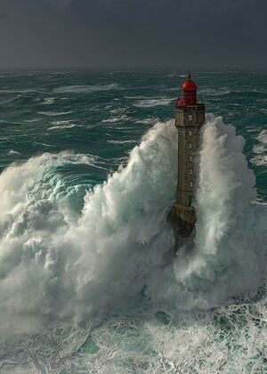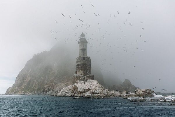 1-Маяк Жюмьен в Бретани, на северо-западе Франции. 2-Заброшенный маяк на мысе Анива острова Сахалин, на скале Сивучья