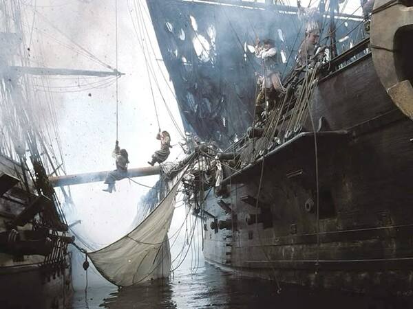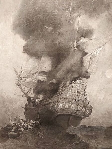 1-Говард Пайл. Горящий корабль. 1898. 2- Рембрандт.Христос во время шторма на море Галилейском. 1633