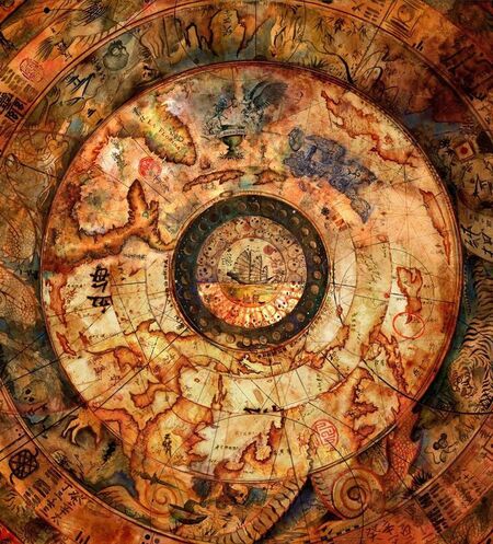 1-Астрономический инструмент. XIII в. 2-Фрагмент карты Фра Мауро, 1459