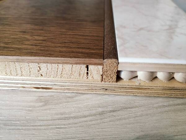 SPC-ламинат, который иногда называют «каменным ламинатом» это многослойное напольное покрытие, состоящее из карбоната кальция (70-80%) и ПВХ-соединения (20-30%). Комбинация полимерной основы и известняка обеспечивает покрытию высокую плотность (2100 кг/м3), по техническим показателям сравнимую с керамогранитом. Основным достоинством SPC ламината перед традиционным (HDF ламинатом), заключается в высокой степени влагостойкости — это расширяет спектр помещений, в которых можно применить данное покрытие, кроме того — доска не набирающая влагу не «гуляет» при изменении теплового режима в помещении.